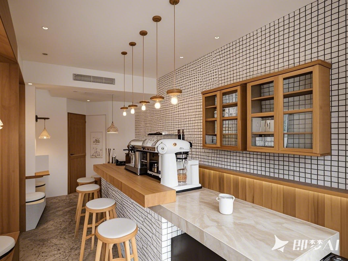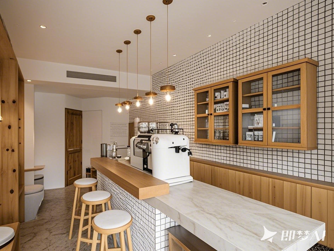 3米長的吧臺暗藏玄機(jī):面向顧客的臺面用溫潤木紋,咖啡師操作區(qū)直接上冷感大理石。這波操作既保持操作臺耐用性,又能讓客人摸到木頭紋理,細(xì)節(jié)控狂喜!