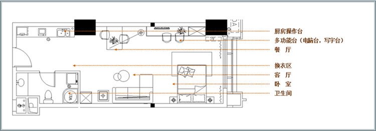 此空間為東茂國際酒店式公寓樣板間項目,整體空間運用現代簡潔的線條,融入中國風元素,具有古典傳承又有時尚現代之風。色彩上運用高級灰,象牙白搭配高貴淡雅黃,讓空間亮麗又不失典雅。頂部搭配線條簡潔的新中式風格燈具,再點綴山水寫意的掛畫使空間多一份雅致,客廳配飾具有優(yōu)雅造型的釣魚燈,使空間意境幽遠,穩(wěn)重中透出活潑,餐區(qū)墻面點綴精致的藍色金色搭配的裝飾瓷盤體現出居者生活品味,書桌上放懸掛隸書條幅文化涵養(yǎng),透出安然之態(tài),在這樣的空間之中定能感覺到中華之美。